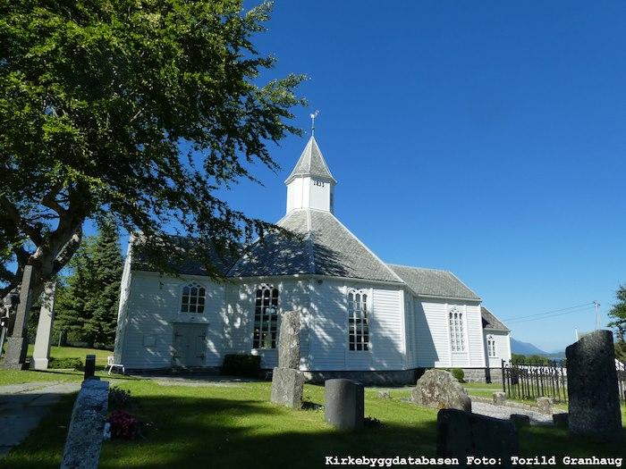 The church of Aukra is an octagonal church dating from 1835. The building was erected to replace a burnt-out 'cruciform church'. It was completed in March 1836 and the work was supervised by Ole Eriksen from Ørskog. The building was covered with slate in 1892.