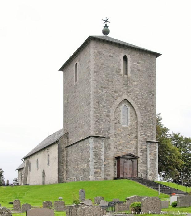 The church of Avaldsnes is a stone church built in the second half of the 13th century. The mounds and monumental stones in the vicinity of the church date from the Roman Iron Age. The church had been in ruins since the 16th century and does not retain any of the medieval furniture. The first major restoration took place in the 1830s, and the church also received a lot of new furniture. The tower is a free reconstruction of the tower that was demolished in 1834, but it has the same base as the original tower.