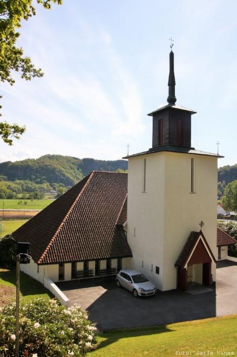 The Bakkebø Church in Eigersund was built in 1960 by the architects Arnstein Arneberg and Olav S. Platou. The concrete church has an altarpiece designed by Arneberg, sculpted by Sven Valevatn and painted by Anders Ragnvald Andersen.