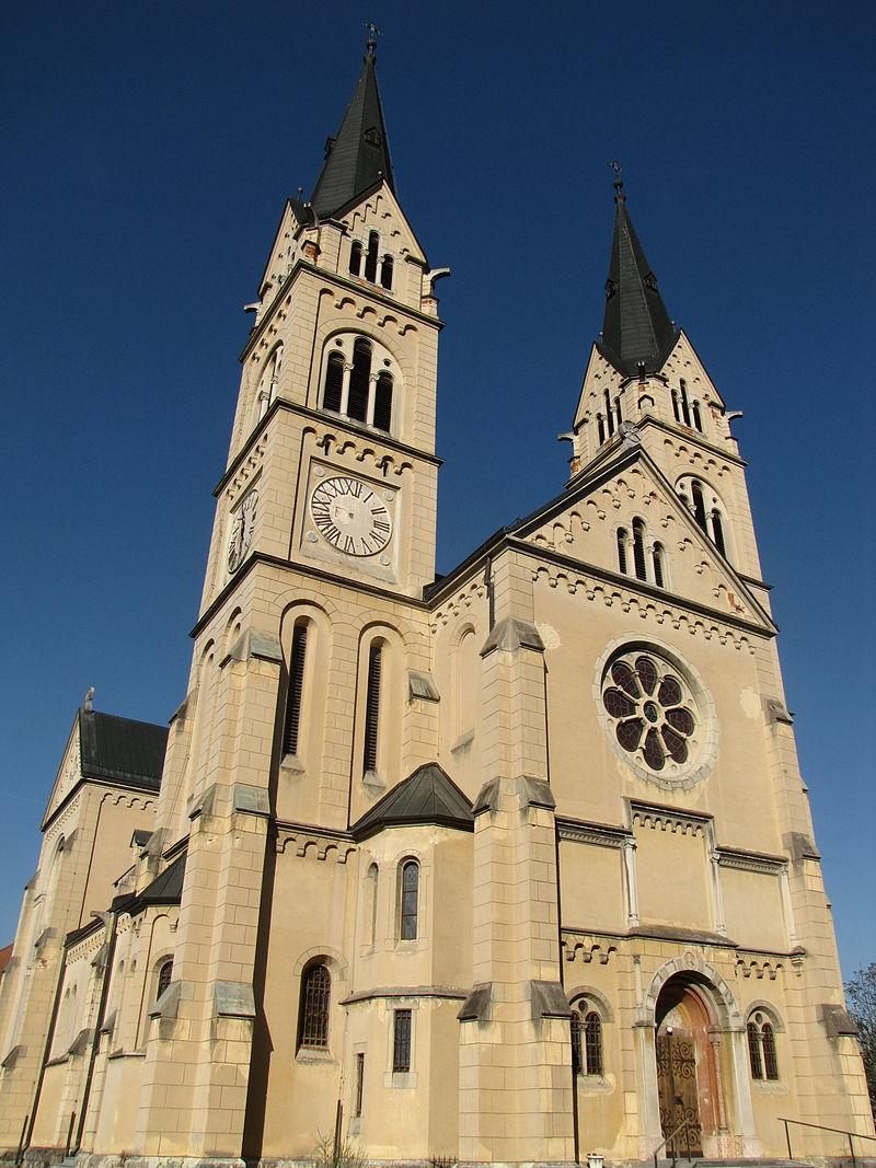 The Basilica of Our Lady of Lourdes, nicknamed the Slovenian Lourdes, is one of the largest churches in Slovenia. It was built between 1908 and 1914 in the neo-Romanesque style. In 1911 the church was painted by Osvaldo Bierti, and the images of the rosary are the work of the academic painter Peter Markovič.