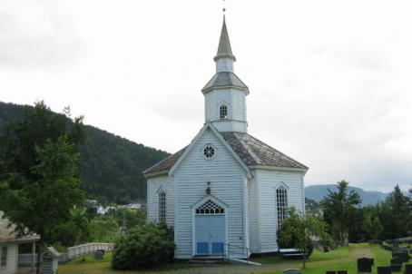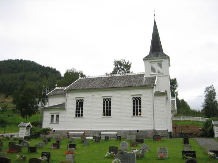 The Bjordal Church is a long church from 1906, designed by the architect Victor Nordan, son of the architect Jacob Wilhelm Nordan. It is the first church in the town. Before it was built, the parishioners used to go to the church in Kyrkjebø, on the north bank of the Sognefjord, a long distance away by boat.