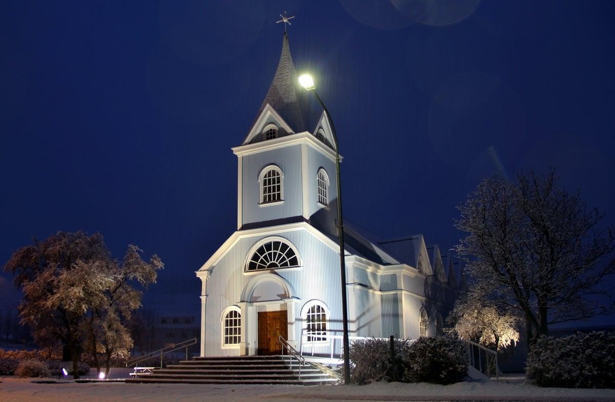 Húsavíkurkirkja is a wooden church with strong characteristics of the so-called Swiss-style (inspired by rural chalets in Switzerland). The architect Rögnvaldur Ólafsson designed the church, which was consecrated in 1907.