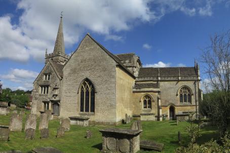 The church is attached to the seat of the Dukes of Beaufort, Badminton House and was built in 1785 by Charles Evans, in the style of St Martin in the Fields in miniature, but with a plain west tower.