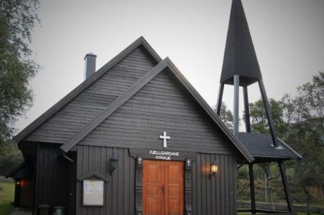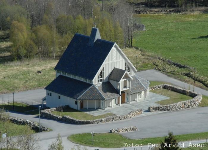 Bykle Church, built between 2000 and 2004, is a wooden "working church" with a long church floor and a gable roof. On the long sides and at the entrance of the church there are low wings that can accommodate various activities. The church was designed by architect Hans Olaf Aanensen.