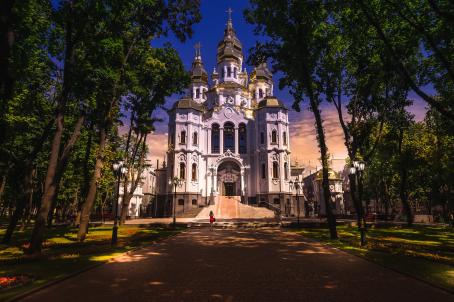 The Cathedral of the Dormition of the Mother of God was the most important Ukrainian Orthodox church in Kharkiv until the construction of the Annunciation Cathedral in 1901. The first mention of the cathedral in written sources dates back to 1658. However, the present cathedral was built in the years 1771-1777 in the style of Russian Baroque. To commemorate the victory over Napoleon, a 90-metre high bell tower was built in the years 1821-1844. In 1929, the atheist authorities closed the cathedral, demolished its domes and removed the bell from the tower. The decorative elements of the façade were also destroyed. In the 1950s, however, several renovations took place. A tornado damaged the tower in 1975.