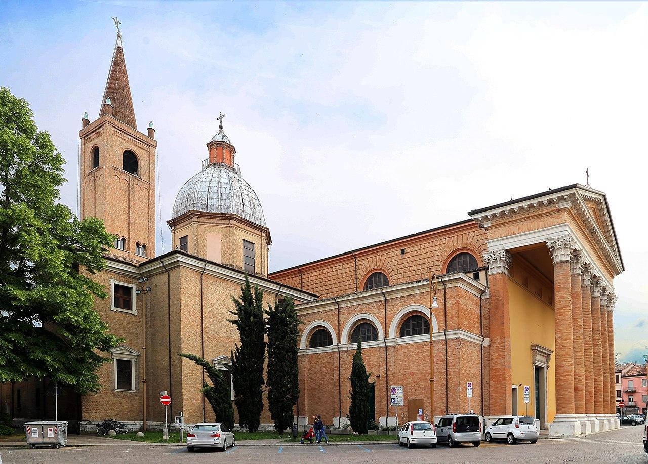 The Cathedral of Santa Croce dates back to the 12th century, but the present neoclassical appearance is the result of extensive work in the first half of the 19th century, following the demolition of the original Romanesque-Gothic church. This work was carried out by the architect Giulio Zambianchi, who completed the new building in 1841.