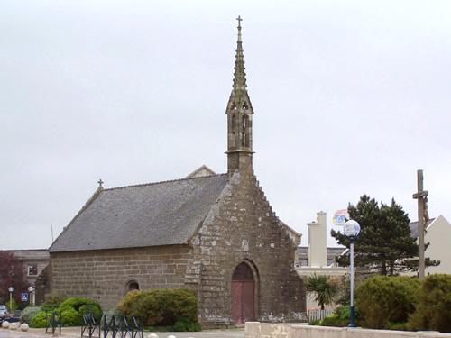 Dedicated to Notre Dame de Bon Secours, and established according to tradition on a former monastery, it was known as Notre-Dame de la Croix in 1540, and marked the boundary of the Pennaroff suburb. A small building paved with terracotta tiles, with a rectangular plan dating from the 15th and 16th centuries and restored in 1854, it preserves the remains of 15th century sculpture on the east gable. In the XVIIth century, it is called "Chapel of the Holy Cross" (as shown by a reliquary "of the True Cross", dating from the XIXth century); several bourgeois weddings are celebrated there, and it is used as a starting point for processions, in particular during the Pardon on the first Sunday of October. Its bell is used in foggy weather to guide ships through the entrance pass, of which the Roche du Cochon is not the most formidable danger.