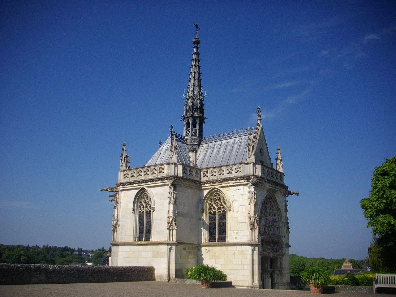 The Chapel of Saint-Hubert was built and sculpted between 1491 and 1496 by Flemish artists in the pure flamboyant gothic style in white tuff on the initiative of Charles VIII (1483-1498). The chapel was later used as an oratory for Anne of Brittany, before becoming the presumed final resting place of the body of Leonardo da Vinci, who died in Amboise in 1519.