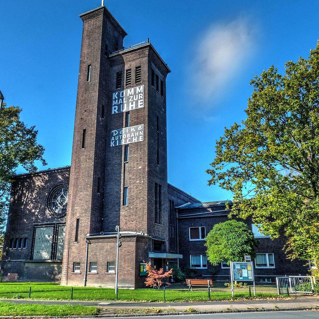 The Evangelical Lutheran Church of the Epiphany was built from 1929 according to the plans of the Castrop-Rauxel architect Wilhelm Tiefenbach. In 2010 the church became the first motorway church in a large city and was included in the Industrial Heritage Route in 2011. The church was built in the Bauhaus style, with the typical simple and strictly geometrical forms.