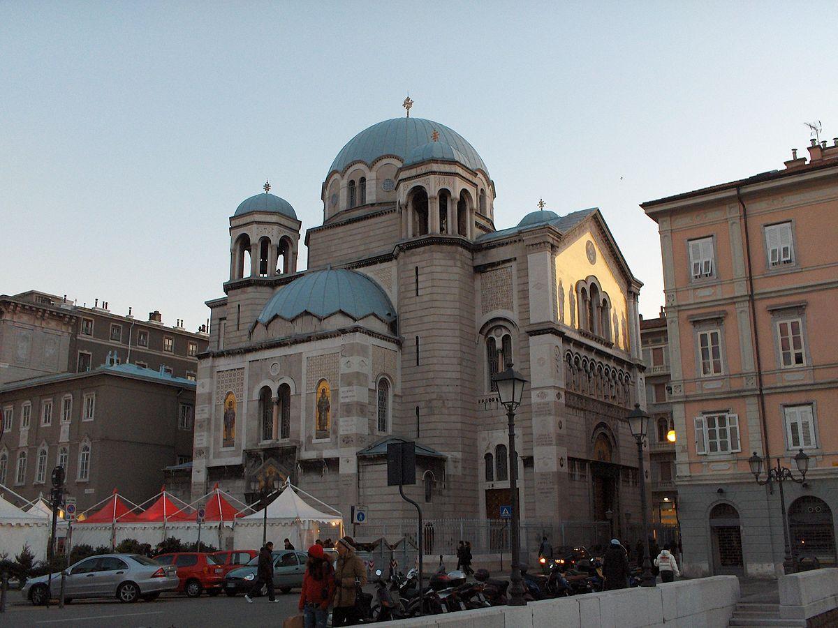 The Church of the Holy Trinity and St. Spyridon is a Serbian Orthodox church built between 1868 and 1885. It is the work of the architect Carlo Maciachini (1869) and it stands on the site of a pre-existing church of 1753, also dedicated to St. Spyridon. The architecture is clearly of Byzantine taste and is characterized by a dome higher than the four bell towers. The façade is decorated with nine large statues by the Milanese sculptor Emilio Bisi (1850-1920). The interior is richly decorated according to Byzantine canons, entirely decorated with oil paintings imitating mosaics.