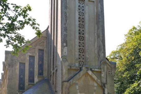 A must-see place in Bagnoles-de-l'Orne, its high perched bell tower overhanging its stone staircase offers a breathtaking view of the town. Its facade, its bell tower and its huge stained glass windows with a strong symbolic, very marked on the aquatic theme: waterfalls, waves, etc... make the fame of this place.