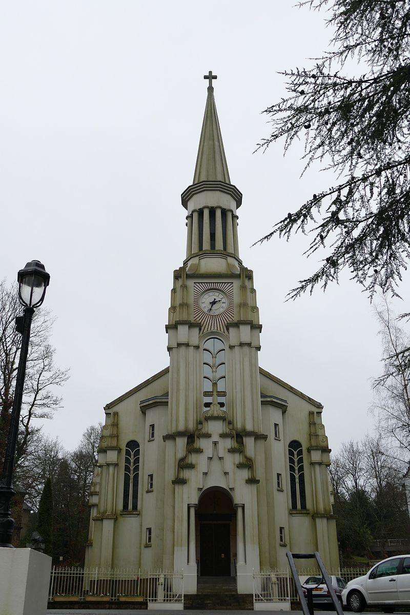 The church of the Sacred Heart was built in 1934 by the architect Olivier Michelin thanks to the subscriptions of people taking the waters. It replaced the old chapel known as the "Hundred Steps" dating from 1897. This Art Deco church, of a dazzling whiteness, is built in reinforced concrete. The facade has a neo-Moorish style porch, decorated with volutes and topped by a bell tower with columns. The stained-glass windows created around the theme of water are signed by the master glass-maker Charles Lorin de Chartres. The architectural and decorative qualities of the Church of the Sacred Heart were recognised in 2004 by the Ministry of Culture, which awarded it the "20th Century Heritage" label.