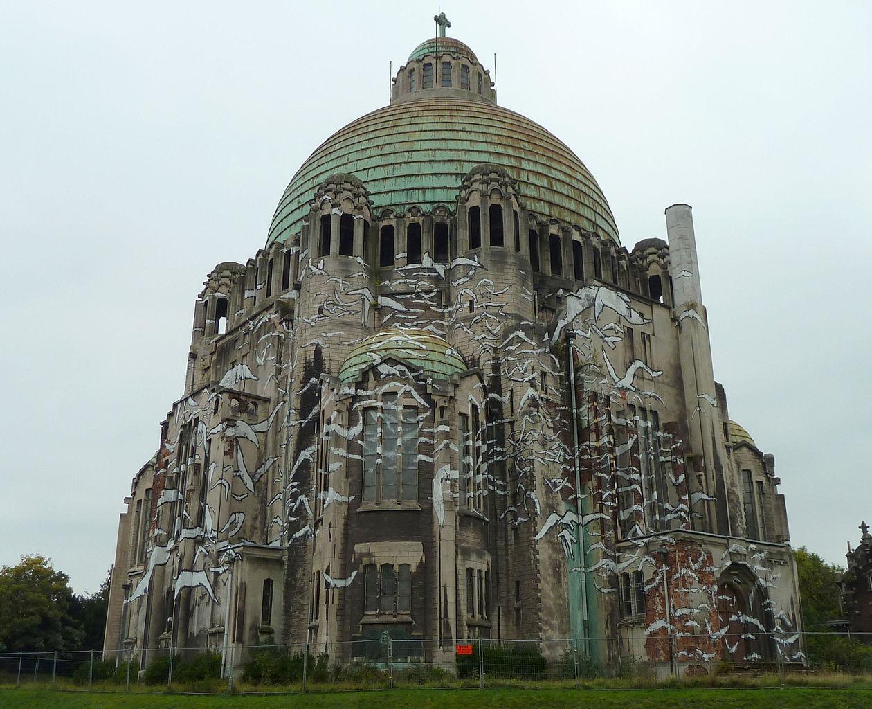 The Church of the Sacred Heart and Our Lady of Lourdes is a monumental concrete church in Art Deco style. The building was built from 1928 to 1936 as an Allied memorial of the First World War. The church was desecrated in 2010 and classified as a Walloon heritage site in 2011. Since May 2011, it is for sale.