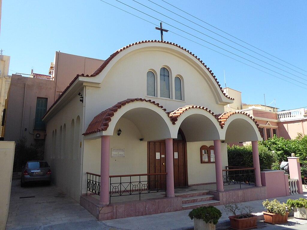 The Catholic church of Saint John the Baptist was founded in the 13th century, during the Venetian era. It functioned as a mosque under Ottoman rule. Part of the building was destroyed in the bombings of Heraklion during World War II. After the war, the church resumed its activity as a Catholic place of worship.