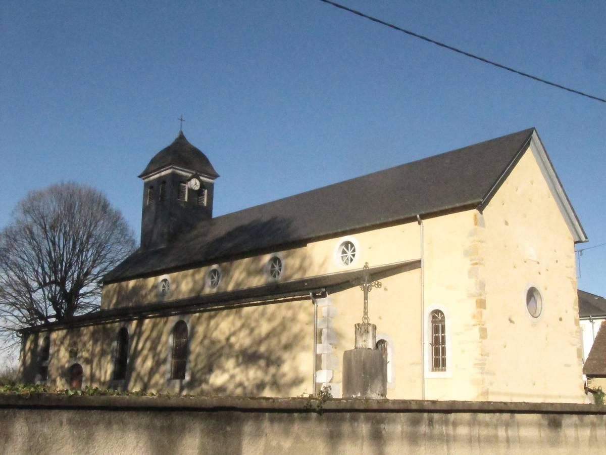 The building is dedicated to Saint Julien, first bishop of Lescar in the fifth century and Saint Radegonde, queen of the Franks in the sixth century. Their statues are featured on both sides of the altar. Also noteworthy is a font, dug in a beautiful white marble capitals, dated to late antiquity or the very early Middle Ages, as well as a beautiful wooden altar-tomb, that is painted green to imitate marble.