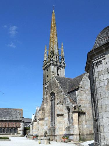Sizun owes its fame to its magnificent parish enclosure, which it owes to the prosperity of the linen industry it enjoyed in the 16th, 17th and early 18th centuries (more than 35 factories were counted there). The parish enclosure of SIZUN, classified as a Historic Monument, is distinguished from other towns by its unique architecture whose ingenuity forces admiration. The Gothic style bell tower is one of the last with spire erected in Brittany, under the reign of Louis XV and bears the dates 1728/1735. It rests on four pillars and has no foundation. Its slender spire, of great finesse, culminates at 56 m. The Arc de Triomphe (1585/1590) is the monument that strikes the attention of all visitors to the parish enclosure. It gave access to the cemetery which, in the past, was located around the church. It is said to be the most beautiful of its kind in Brittany.