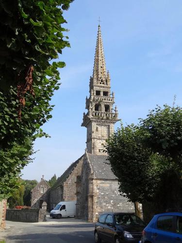 The present church, dedicated to St. Yves (patron saint of judges and lawyers) was built during the 16th and 17th centuries, on the site of the former castral chapel dating from the Middle Ages. Despite the extraordinary finesse of the sculptures of the south portal or the double-gallery bell tower, considered to be one of the most beautiful in Leon, it is inside the church that the wonder reaches its peak: starting with the polychrome oak rood screen with its grotesque figures, the sandpits mixing religious and secular scenes, or the large stained glass window of the Passion made in 1539 (2nd largest stained glass window in Brittany with 21.05 m²). The Renaissance stained-glass window bears witness to the Flemish influence in Breton art (in the 16th century, Brittany occupied a prominent place in the trade between the Netherlands and Spain).