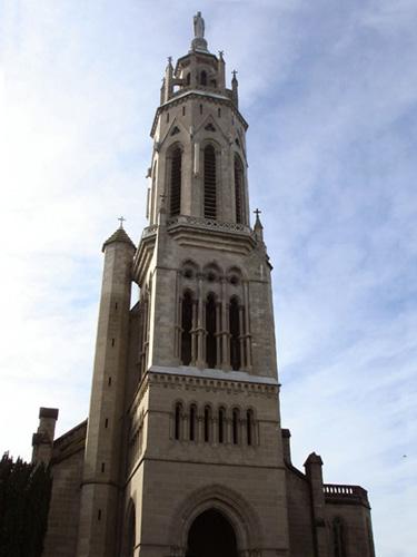 Although it is a church of contemporary times, it has many characteristics of Gothic architecture, both inside and outside. Butting arches support the walls of the nave's elevation. A high porch belfry with four levels of elevation reveals bays and other fillings of the different floors of this tower, which is largely airy while being a skilful work of stone.