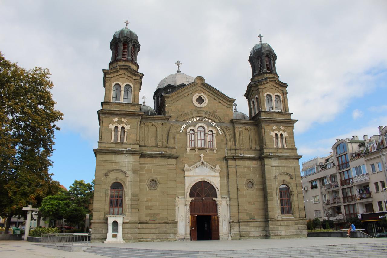 This cathedral, dedicated to the two creators of the Cyrillic alphabet, was constructed between 1897 and 1907 by the Italian architect, Ricardo Toscani. The building has two naves and a large dome, typical of the Bulgarian style. In addition to this, the stained glass was done by the same artists who created the stained glass of the Alexander Nevski cathedral in Sofia.