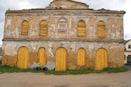 The Great Synagogue in Stolin was built in 1790-1793 in the neo-classicist style with help from the owner of the town, Kashtan Kozenewski. In 1827 the building was damaged by fire and later restored. After World War II the building was used for grain storage until it was abandoned in the 1980s. It currently is in disrepair missing a roof.