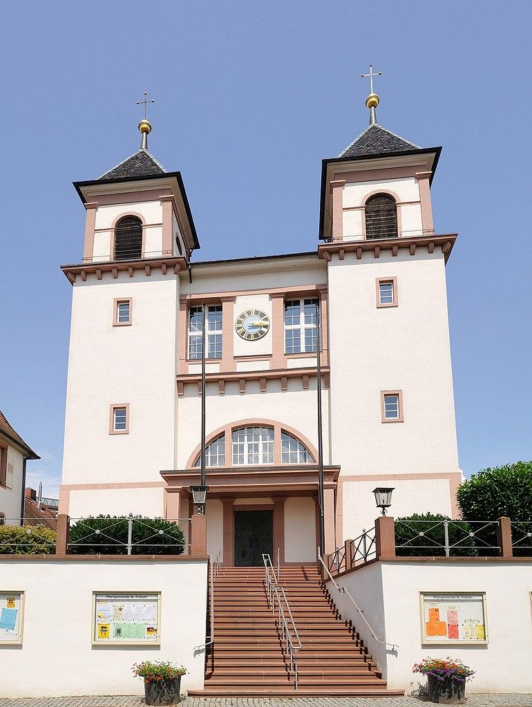 The church of St. Fridolin was built between 1821 and 1822 according to the plans of the architect Christoph Arnold and bears a strong resemblance to the pilgrimage church of Bad Rippoldsau-Schapbach, built in 1829. The exterior of the church is neo-classical, while the interior is classicistic, enriched with rococo elements.