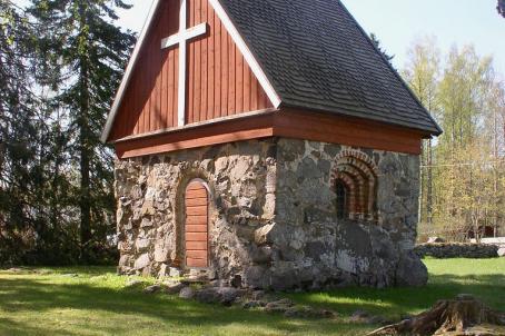 The church of St. Olaf is a late medieval greystone church built between 1506 and 1516. The church burned down at the beginning of the 17th century, destroying the entire original interior. The church was in use until the middle of the 19th century, but when the church in Tyrvää was completed in 1855, it was abandoned. Repaired all over from the 20th century until the 1990s, a theft in 1997 damaged much of the interior woodwork. The church was rebuilt between 1997 and 2003. The artists Osmo Rauhala and Kuutti Lavonen painted the new interior.