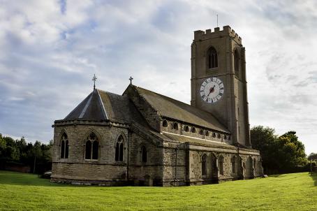 On the 15th century tower is a unique, one handed clock, painted direct onto the stonework. It is 16.5 feet in diameter and the hand is 9 feet long. There is a chapel dedicated to the memory of airmen who lost their lives on operations from nearby RAF Coningsby.