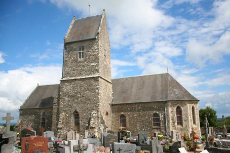 The Church of Saint Pierre de Heugueville sur Sienne was given to the Abbey Lessay around 1080. Following the Hundred Years War, this Norman church, located at the estuary of Siena, suffered damage that required repairing the tower and porch. The church is composed of a nave of five bays, a false transept surmounted by a saddle bell tower and a choir with flat bedside of 3 bays.