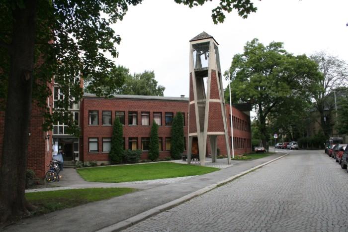 Døvekyrkja (Church of the Deaf) is located on the site of a former prayer house used by the Kristiania Deaf Association. The land where the present church is located was taken over in 1965 and the church was consecrated in 1974.