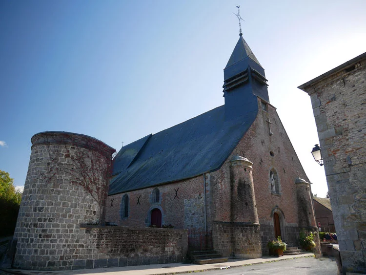 Église Saint-Hiltrude is located in Liessies, a small village with 537 inhabitants in the Département du Nord, about 15 km east of the town of Avesnes-sur-Helpe. It was built in the 16th century.
