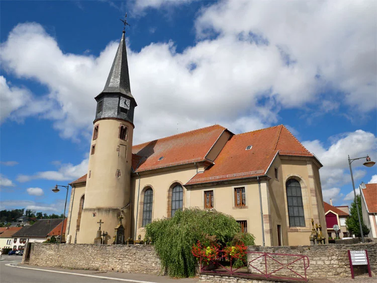 Église St Brice is located in Hilbesheim, a village in the Département Moselle in France, about 4 miles northeast of Saarburg.