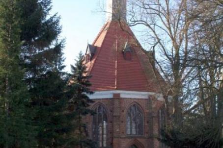The chapel was built around 1420 as a late gothic central building. It is considered a replica of the Holy Sepulchre in Jerusalem, with a central column and star vault. Originally there were about 31 of these chapels in Pomerania.