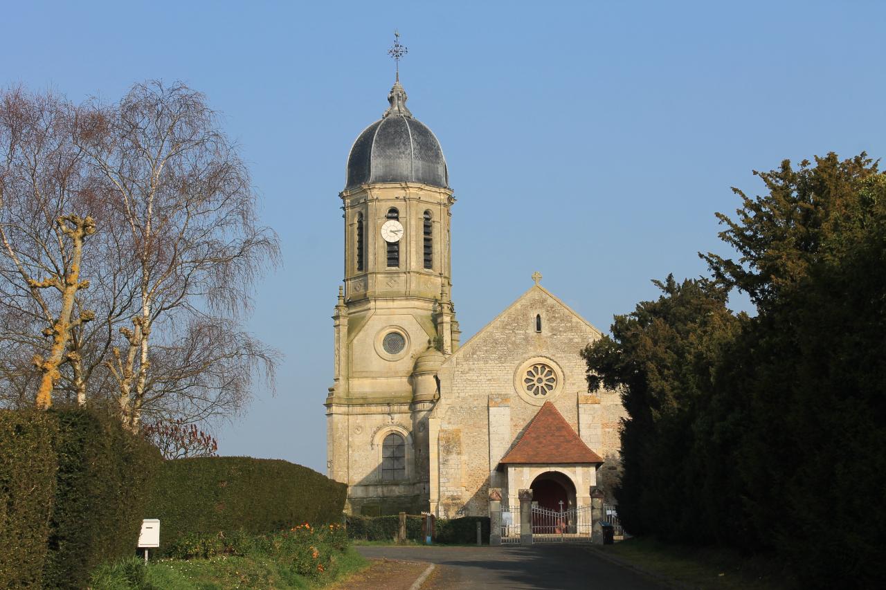 L'église fut construite aux XIIe et XVe siècles, le chœur est roman. Le clocher date de 1534. Les fonts baptismaux en pierre sont du XVIIe siècle. Le remarquable clocher est une tour polygonale qui s'élève sur trois niveaux et surmontée d'un dôme. La façade principale est un mur pignon plat percé d'une large rosace au niveau supérieur. À l’intérieur, la nef a trois travées encadrées de quatre contreforts et trois baies en arc brisé à remplages côté sud de l'édifice. Le chœur a deux travées, il est ajouré de deux baies allongées en plein cintre et d'une porte en plein cintre également sur la travée la plus à l'ouest. Le chevet est ajouré de trois fines baies en plein cintre surmontées d'une rosace.