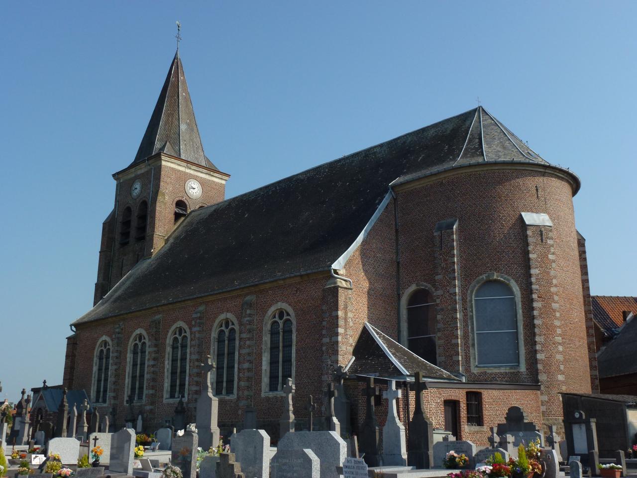 La première église, de style roman (Xe-XIe siècles) dépendait de la cathédrale de Tournai et de l'abbaye de Flines. De plan rectangulaire, l'édifice comprend trois vaisseaux de cinq travées. Il est précédée d'une tour-beffroi en briques qui abrite la plus vieille cloche de France (de 1285) encore en fonctionnement. À L’intérieur on peut admirer un orgue aux 784 tuyaux datant de 1894.