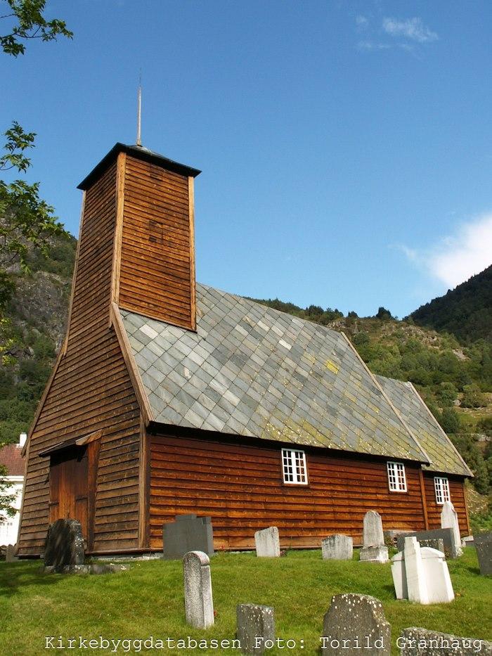 The old church of Gaupne is a wooden church dating from the mid 17th century. The church has a rectangular nave and a narrower, almost square choir. The bell tower stands at the western end of the lower part. The church has richly carved side beams on the west portal, which come from the previous church on the site. In 1909, the Society for the Preservation of Ancient Norwegian Monuments took over the church. The church hall has largely retained its 17th-century character.