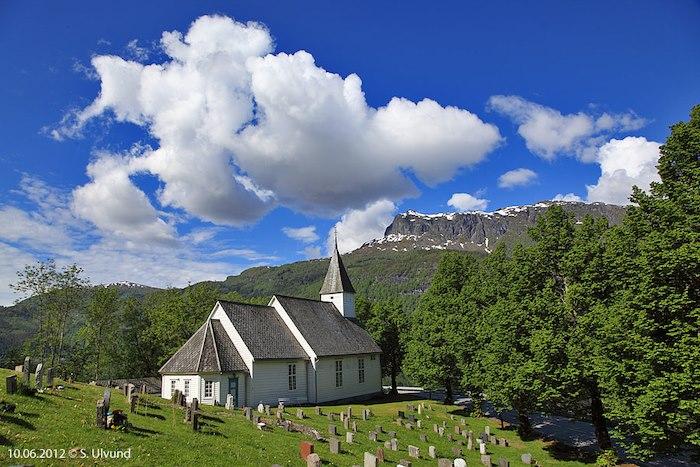 The church in Granvin is a long wooden church dating from 1726. It replaces the Granvin Stave church which had to be demolished due to decay in the 1720s. The first time Granvinskyrkja is mentioned in written sources is in 1306.