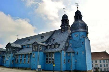 The Gustav-Adolf-Stabkirche is a reproduction of the Borgund stave church built between 1907 and 1908. During a study trip to Norway, the architect Karl Mohrmann saw staves churches and, inspired by them, he decided to reproduce one in Germany, arguing that this type of church existed throughout the entire region of North Germany at the beginning of Christianization.