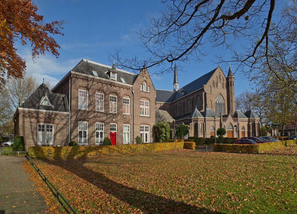 It is a church built in neo-Gothic style, which was designed by H.J. from Tulder. The church, with a striking spireless tower, was built in 1857-1859. The ground pattern is a cruciform basilica with a three-aisled transept and ambulatory. The church replaced the medieval Willibrordus Church, which was located on the same site. Near the church is the Triumphal Maria flanked by two angels memorial, which was founded in 1894 by pastor-dean Arnoldus van de Laar. In 1976 the church was included in the Monuments Register as a national monument.