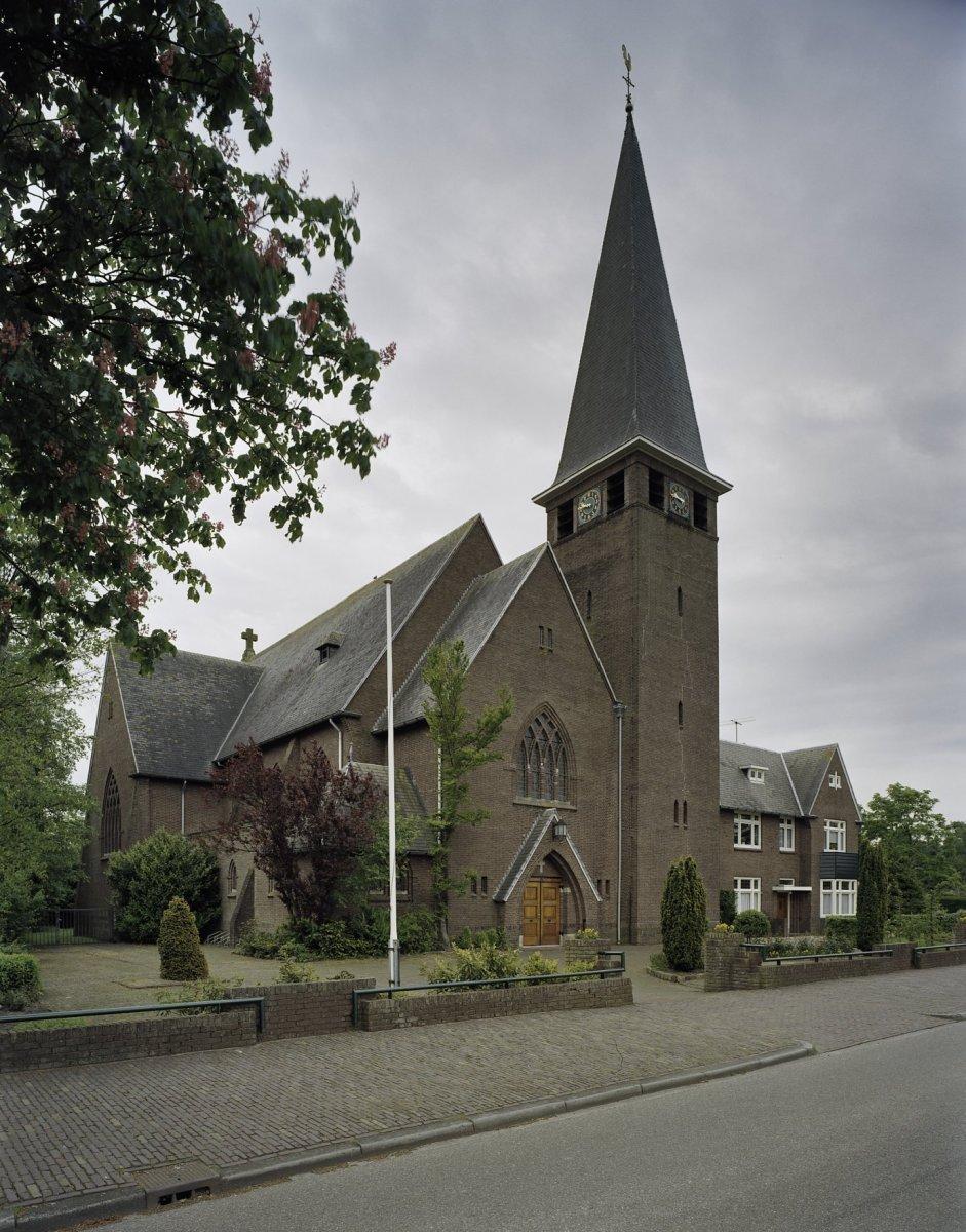 Three-aisled church with transept and a tower at the side that defines the image in traditionalist, neo-Gothic forms. The main nave (central nave) is, in accordance with the Roman Catholic liturgical wishes of the early twentieth century, wide; the side aisles are narrow and serve as walkways.