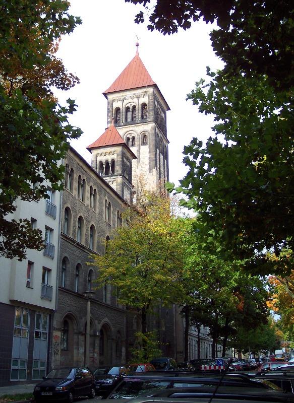 The Sacred Heart Church is a Catholic church that was built between 1897 and 1898 by the architect Christoph Hehl. At the end of the 19th century, the urban expansion of Berlin necessitated the construction of new places of worship. As the future district of Prenzlauer Berg was not very dense, the only notable pre-existing buildings were windmills and inns. One of these inns was purchased in 1890 by the parish of St. Hedwig to build a chapel, together with the adjacent presbytery and a Catholic school.