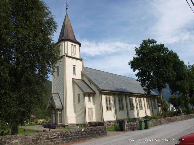 The Hjørundfjord church was designed in 1880 by architect Henrik Nissen. The church was restored in 1961 and then given new colours. The altarpiece from the Stave church that preceded the church has been placed in the new church.