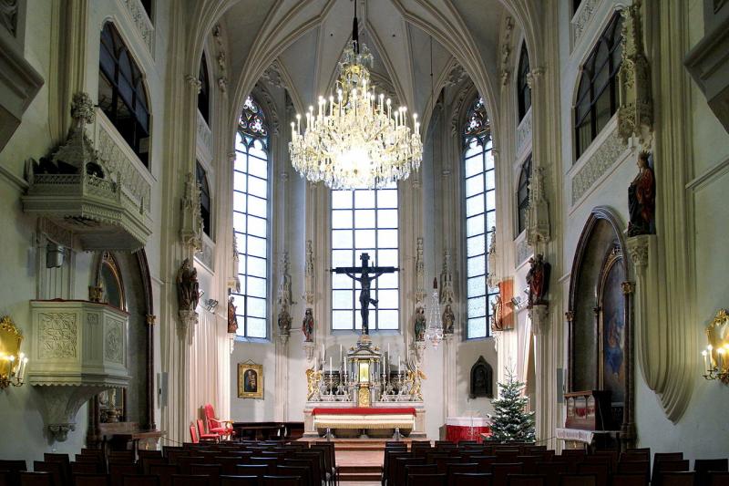 The Hofburg Chapel is the oldest and main chapel of the Hofburg Palace and the chapel of the Habsburg House. A Romanesque chapel has existed here since the 13th century and was extended in Gothic style from 1447 to 1449. Maria Theresa (1745-1765) ordered a Baroque reconstruction of the chapel, but the chapel regained its Gothic appearance in 1802. The chapel occasionally houses the famous Viennese Court Music Orchestra.