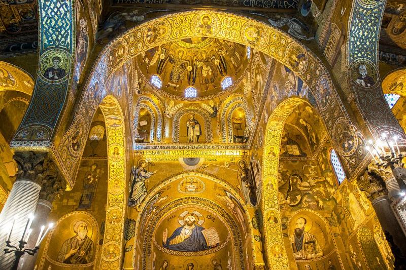 The Palatine Chapel was built between 1130 and 1140 for the use of the first Norman king of Sicily, Roger II. It is an emblematic building of the Arab-Norman style. The chapel is filled with golden mosaics in Byzantine style. They were made by Greek artists called for this purpose by Roger II. They date back to the 12th century but have undergone numerous restorations and repairs over the years. The chapel has been a UNESCO World Heritage Site since 2015.