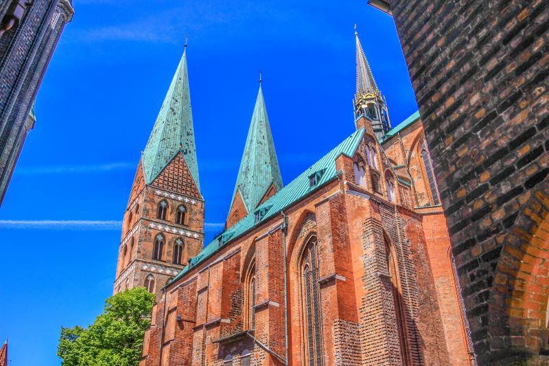 The Marienkirche (officially St. Marien zu Lübeck) was built from 1277 to 1351. The building was a symbol of the economic and political power of this city then at the head of the powerful Hanseatic League. As part of the old town of Lübeck, the church is a UNESCO World Heritage Site. Saint Mary is widely considered as the "mother church of brick Gothic".