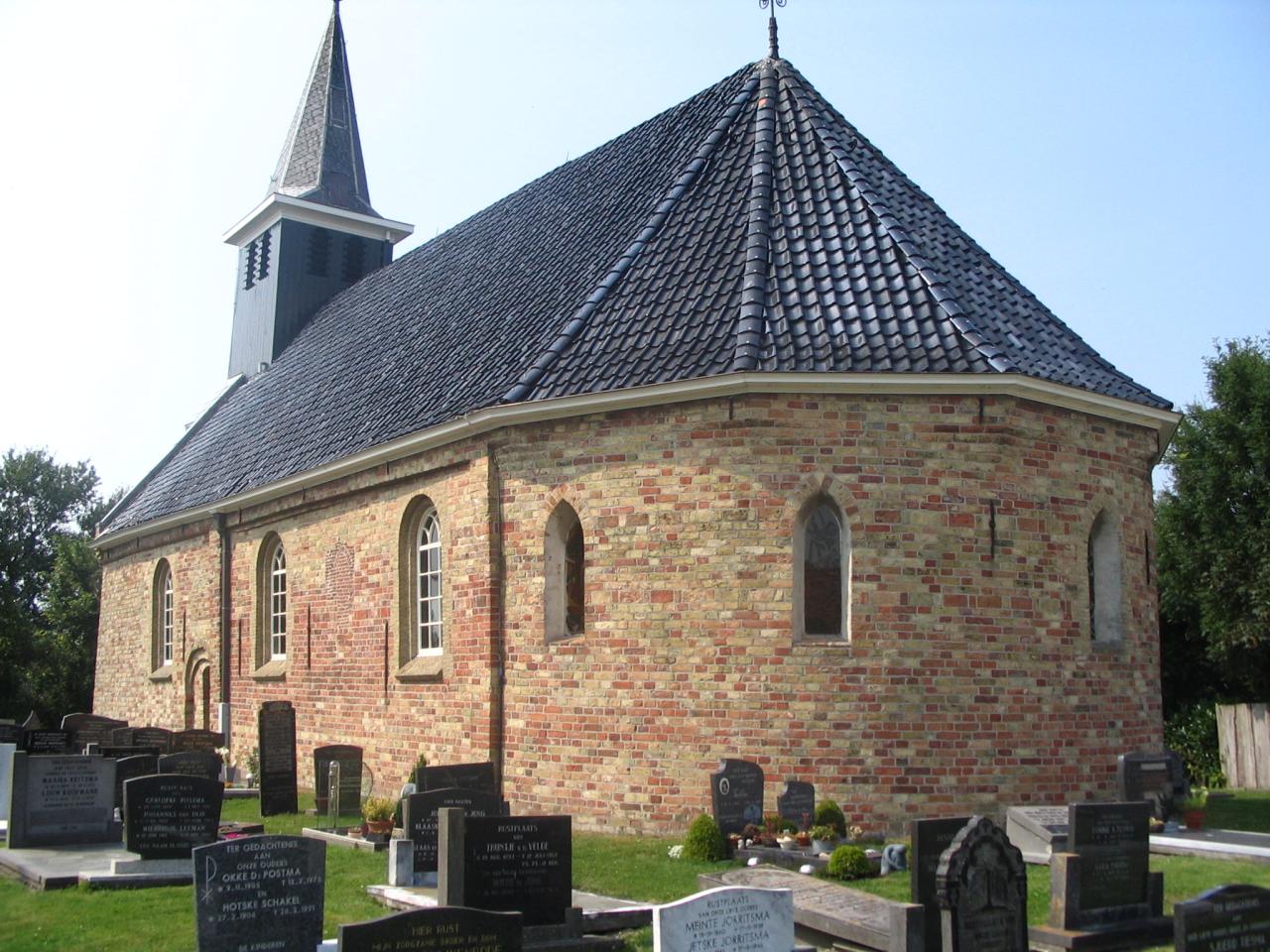 Reformed Church and Tower. Modest three-sided closed hall church built in 1746 against 13th century tower, finished by saddle roof when the 18th century church was built. Interior beautifully decorated 18th century pulpit with coats of arms of Haersma-Wyckel, two stained glass windows by Ype Staak, 1746, gravestone, and seven text boards, all mid-18th century. Single manual organ made by LJ and J. van Dam in 1823.