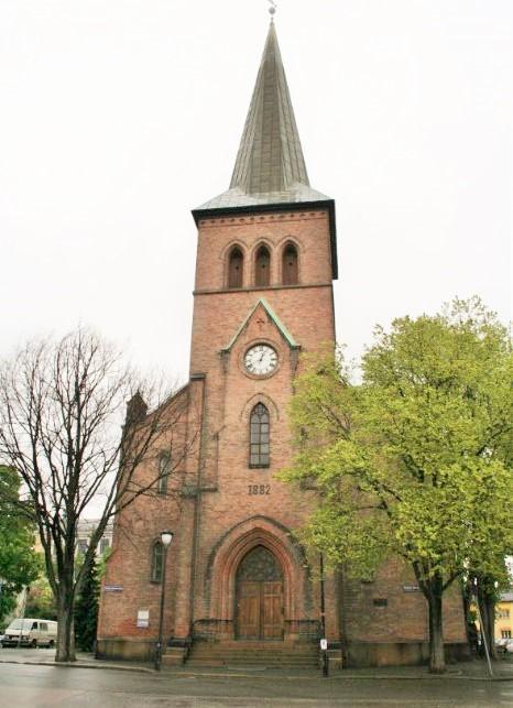 The Kampen church is a long church with three naves, which was inaugurated on 29 November 1882. The architect of the church was Jacob Wilhelm Nordan. In the years 1989-1994, the church was decorated with twelve large and six small stained glass windows and two rosettes on the entrance doors, all by Peer Lorentz Dahl.