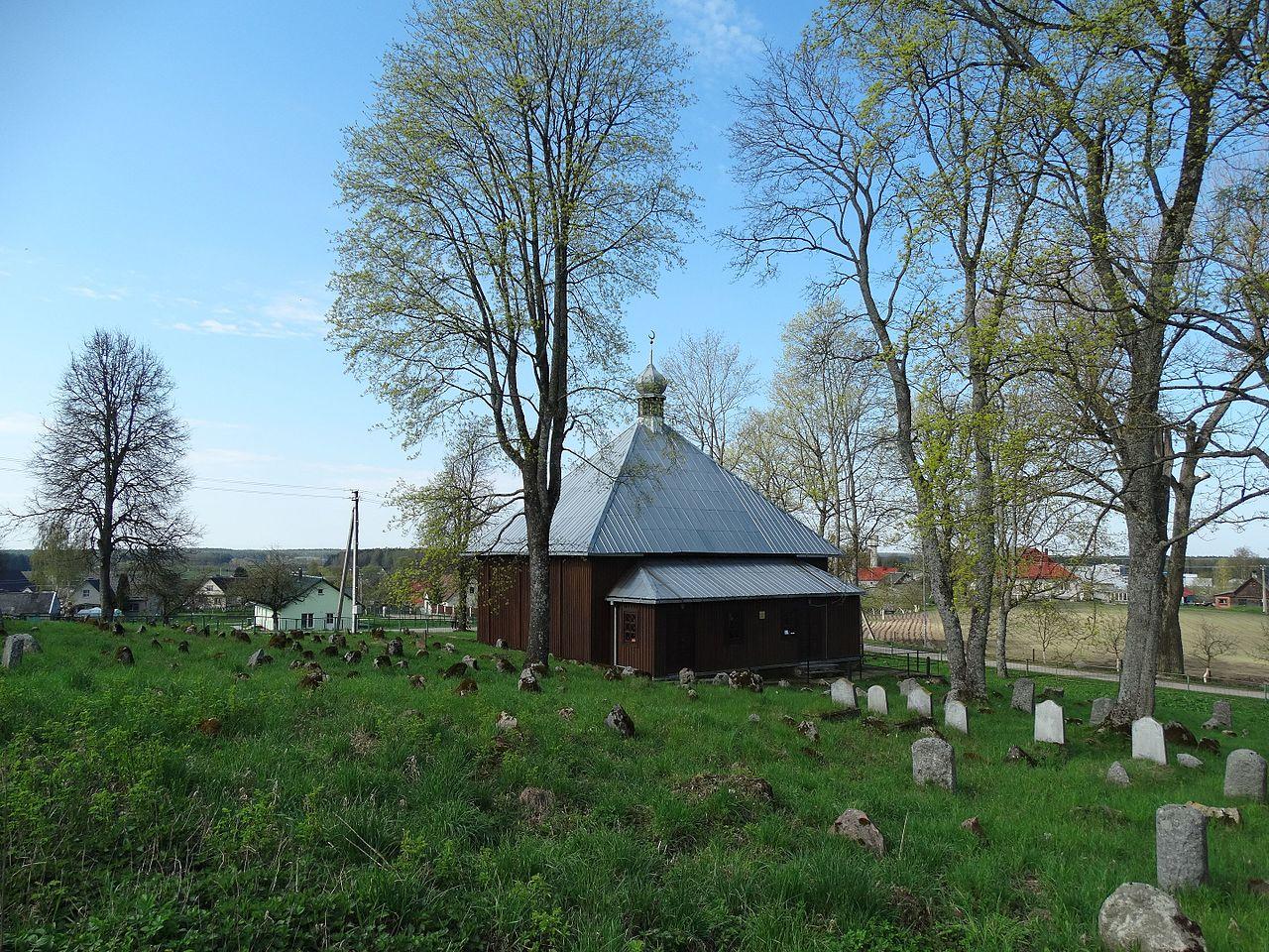 The Tatar mosque of Keturiasdešimt Totorių was built in 1815 on a former mosque site from the reign of Vytautas the Great (1392 - 1430). The building has a rectangular plan with a square roof. At the top of the roof is a small minaret turret. It is octagonal, onion-shaped, with glass windows and a crescent-shaped point. The building was renovated in 1993.