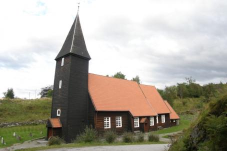 The Alversund church is a long wooden church from 1879, designed by the architect Jon Jonsen Alvær. The old church was still standing when the present church was built and it remained standing for a few years before it was sold at auction. In 1979 the church was renovated.