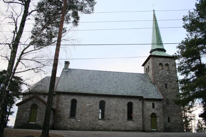 The Klemetsrud church is a long church dating from 1933. It was designed by Major Herman Backer and completed by Einar Engelstad in 1932-33 after Backers' death. The church was enlarged by an extension in 1982 and restored in 2008-09.