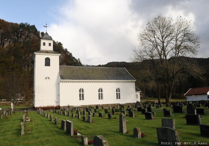 Hægebostad Church is an octagonal church dating from 1844. The church was built according to the designs of the parish priest, Nils Christian Hald, with the approval and minor remarks of the head of state Christian H. Grosch. A church on the site is first mentioned in 1445. The medieval building was demolished in 1629 and a long wooden church was built in its place. The wood from the 1629 church was reused when the new church was built in 1844.